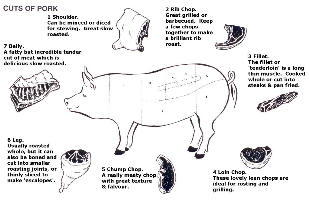 With the thermometer (or iPhone) pushing 90 for the first time this year, I welcomed this holiday weekend with sunglasses and flip-flops. Ahh…summer is on its swift way. Last year, on Memorial Day weekend, I posted about pork and the different cuts of meat you can use for grilling. Turns out, this has been one of my most popular posts. (It’s hard to contend with the most popular search term: “How to Make a Vagina Cake.”) I wanted to share more details on the different cuts of pork. Below is a diagram and a recipe for Rosemary Pork, but not without some ethical reflections first.